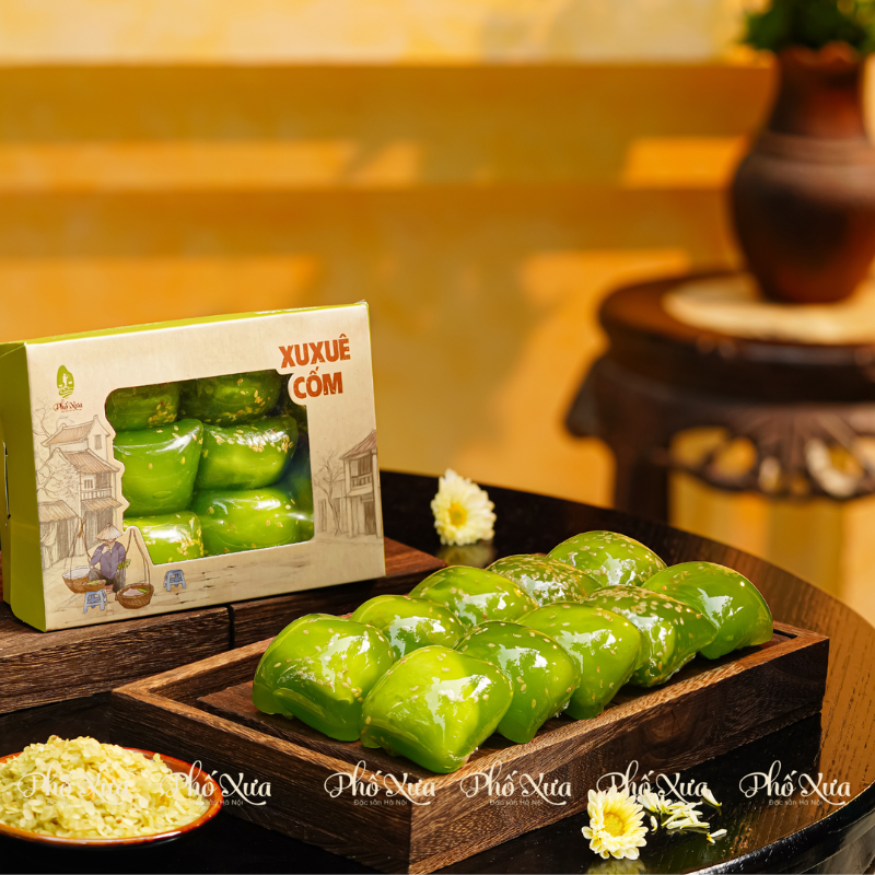 Bánh Xu Xuê Cốm Xào – Món quà dịu dàng mang hơi thở cốm Hà Nội, chuẩn vị xưa, ít ngọt, thanh nhẹ.